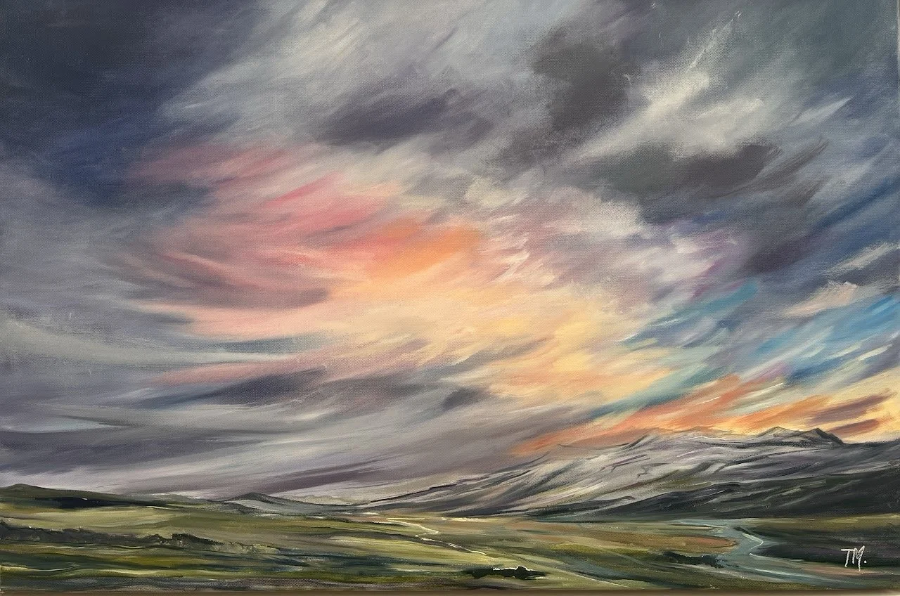 Tania captures the dynamic light and wide open skies in her sketches and paintings. As a sea kayaker and adventurer, she translates moments in time onto canvas in her studio, favouring oil paints, watercolours and gouache, often painting plein air.