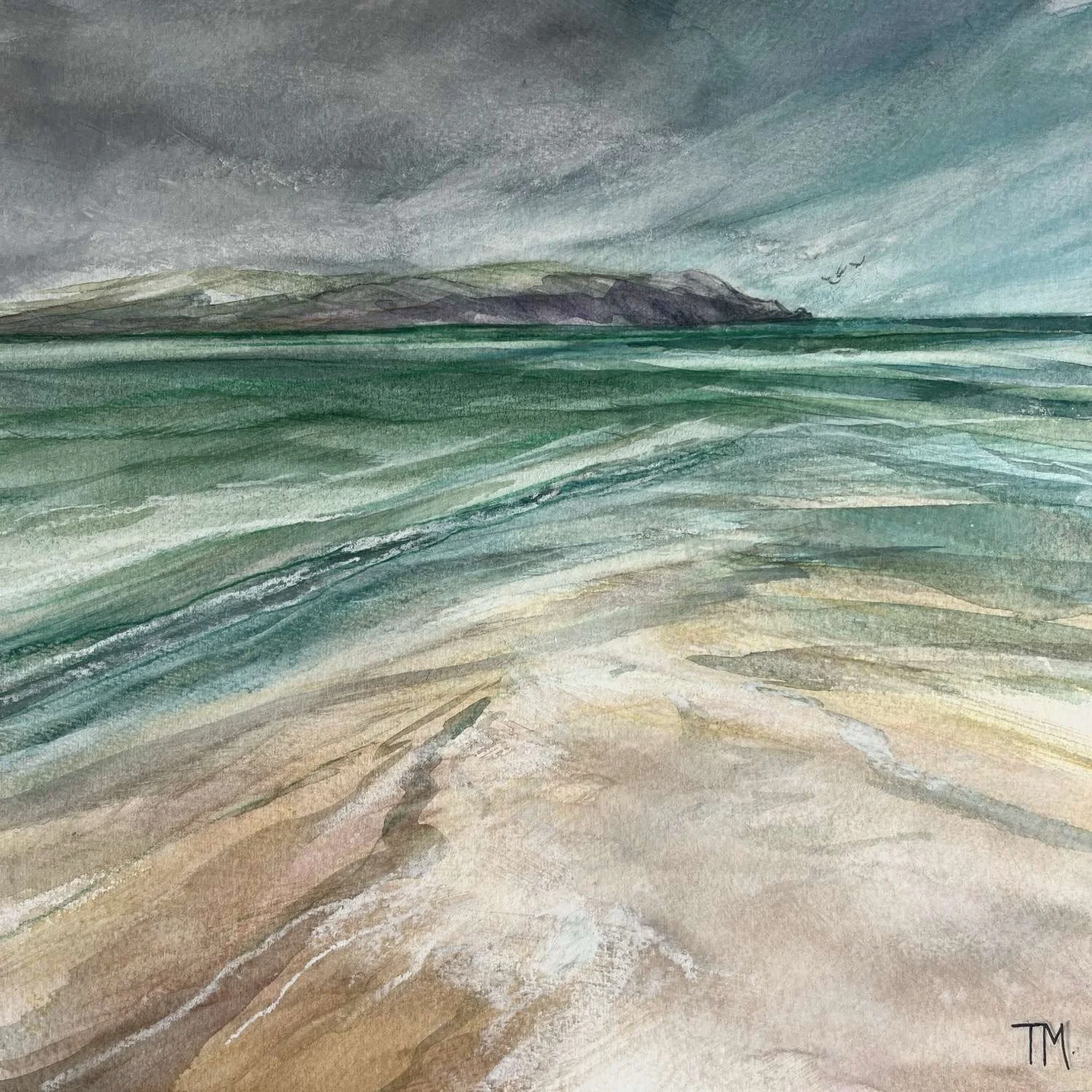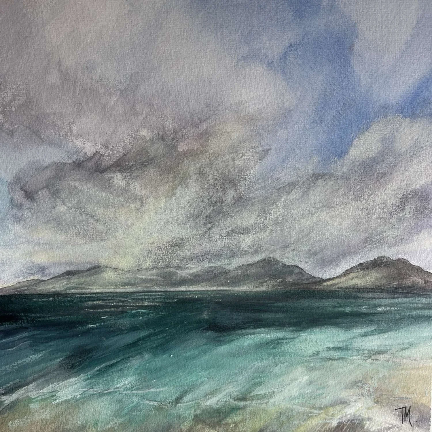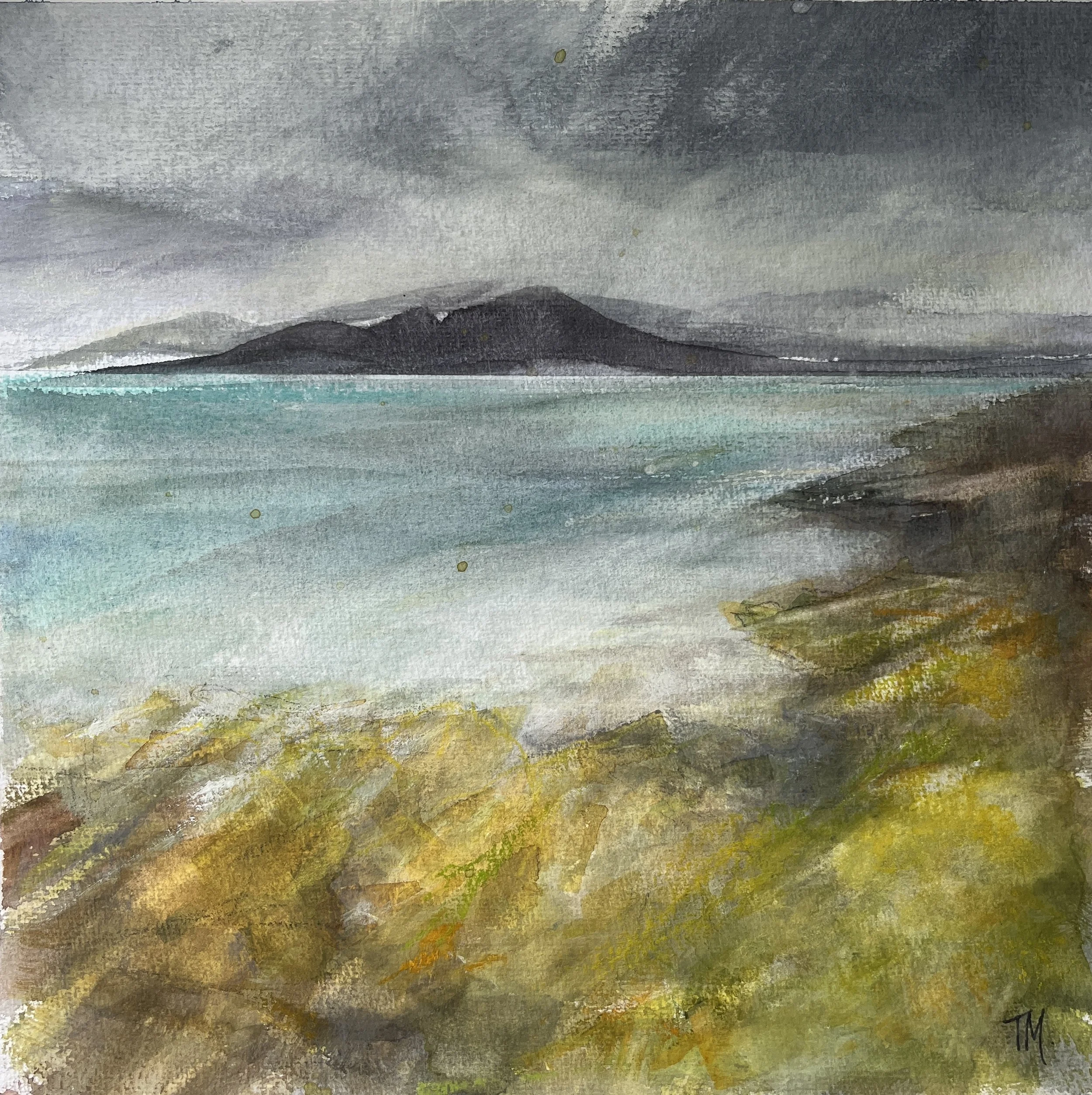 The day was dreich, but the light quality and colours were beautiful. This is a studio piece based on sketches from my travels in the Outer Hebrides.
