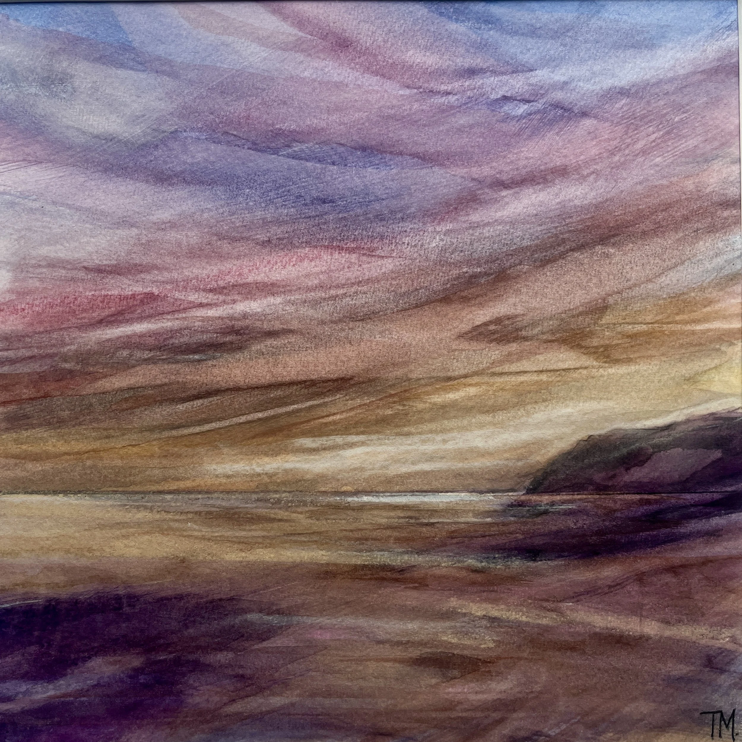 Many of my paintings start outdoors, where I sketch and gather colour studies in wild coastal places or along quiet inland lochs. Back in the studio, these impressions evolve into larger works that blend observation with imagination. The result is a body of work that celebrates the beauty of impermanence — light that fades, weather that passes, and landscapes that are always becoming something new.